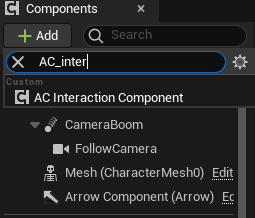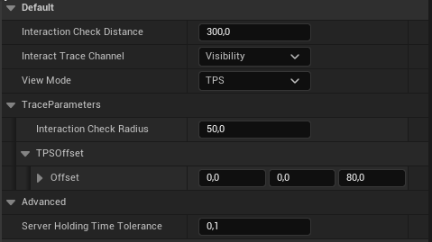 To start using the Interact System, you'll need to add the AC_InteractionComponent to your Player and configure the parameters.