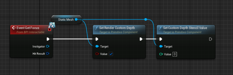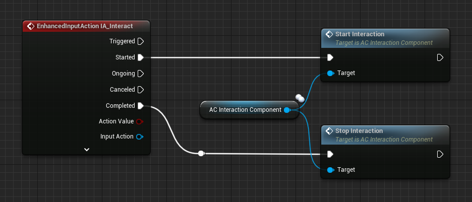 Then, connect "Start Interaction" and "Stop Interaction" from the AC_InteractionComponent.